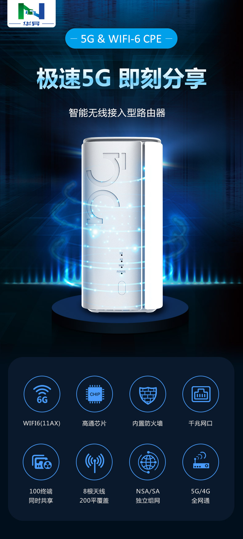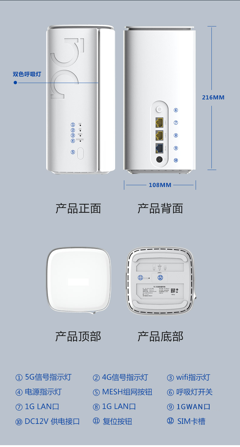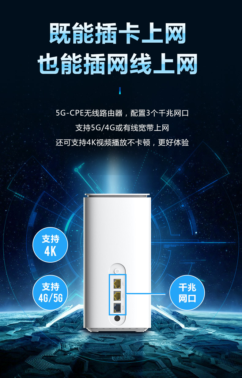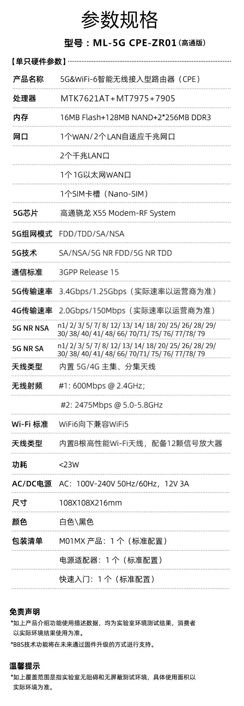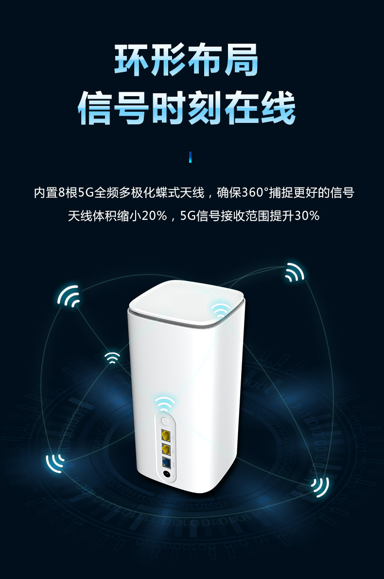 ML-5G CPE-ZR01(高通版)是5G & WiFi-6 智能无线接入型路由器(CPE),基于全新的硬件平台开发,可满足日益增长的移动终端和IOT 物联网节点的接入需求,能极大地提高用户的无线上网使用体验。CPE 完全兼容 NSA/SA 双模式,符合工信部电信产品入网标准。提供高达千兆级的空中光纤接入能力,满足 VR/AR/4GK/8K 在线视频流的传输带宽需求。得益于最新 802.1ax WiFi6 技术平台,单台 CPE 即可覆盖 200 平方空间并提供更佳的无线信号和网络带宽。提供了未来安全的技术、更高的网络效率、更快的 Wi-Fi 速度、更大的覆盖范围和更长的电池寿命,为用户提供了更好的网络体验。