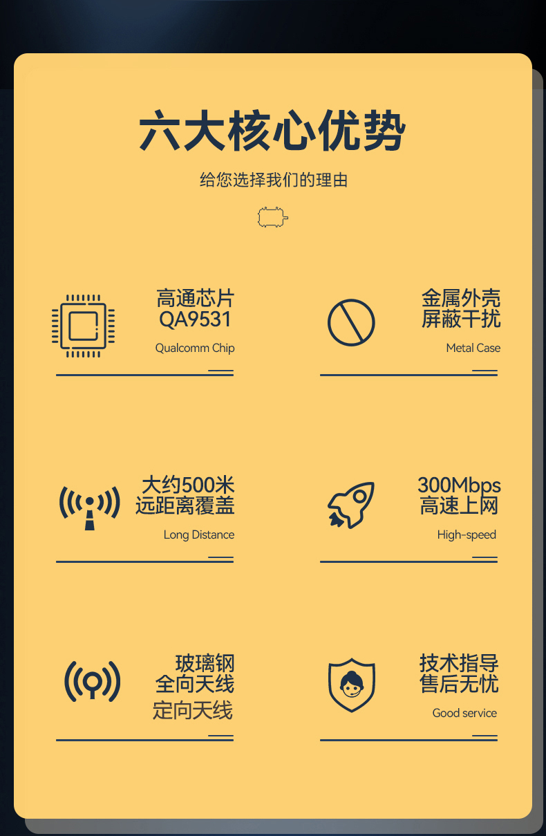 • 拥有更好的传输质量,更高的传输速率,速率最高可达300Mbps。