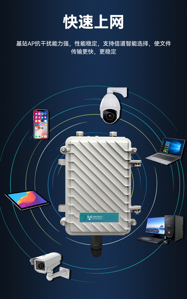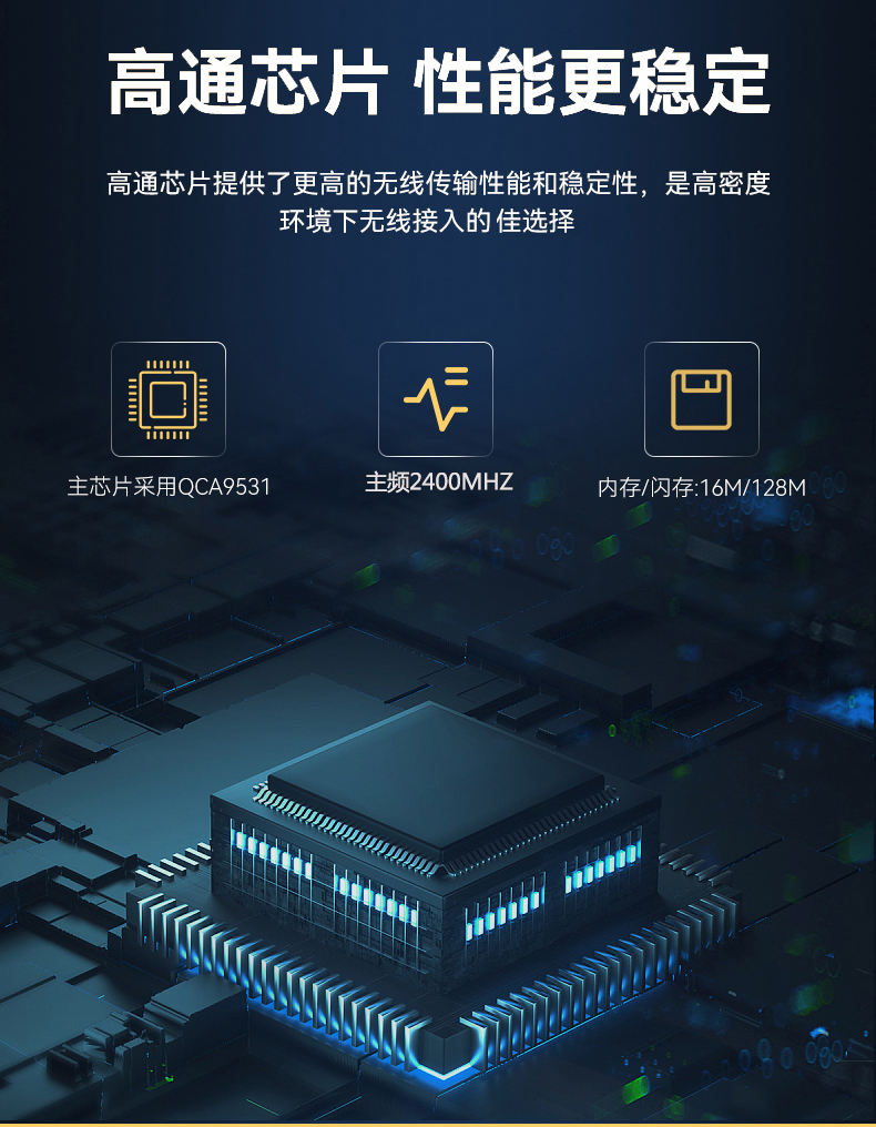• 采用高通芯片,大大的扩展了用户容量,可支持用户数为60+。