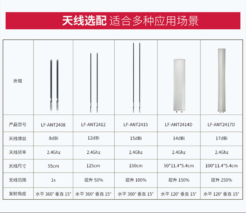 外置天线2.4G | 2根2.4G全向天线,每根增益:8dBi | ||||