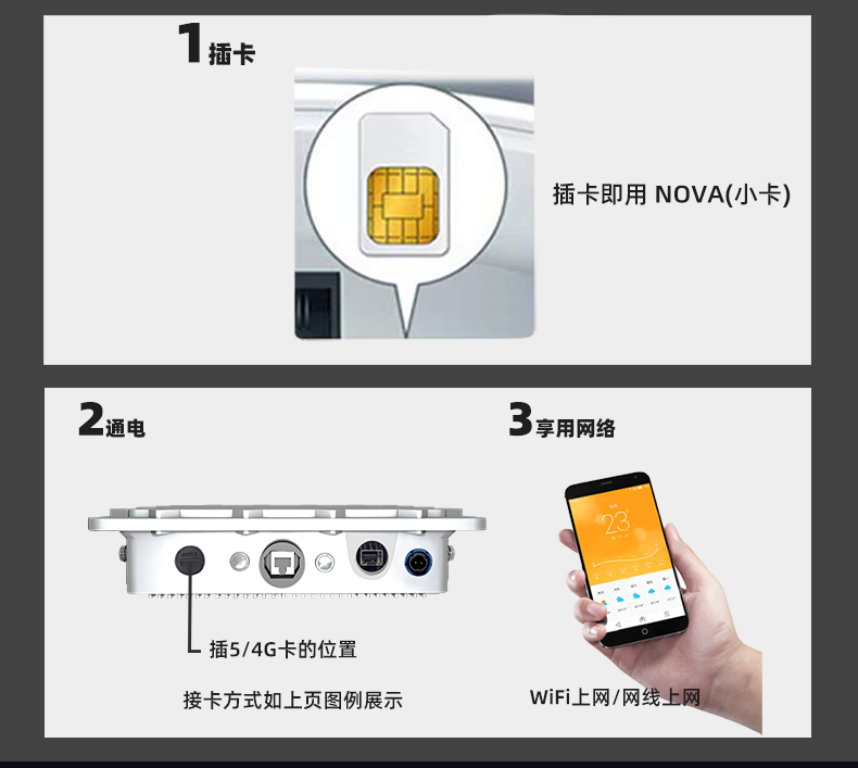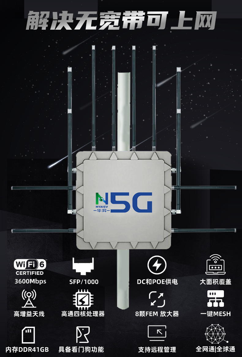 Z800AX是一款 5G+ WiFi6 的无线高端路由产品,通过 5G 移动通信拨号或 1000Mbps WAN 口拨号访问互联网,再通过无线 WiFi 6 及 1000Mbps 有线局域网分享互联网网络。