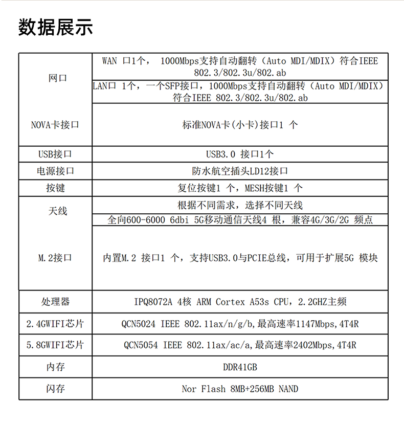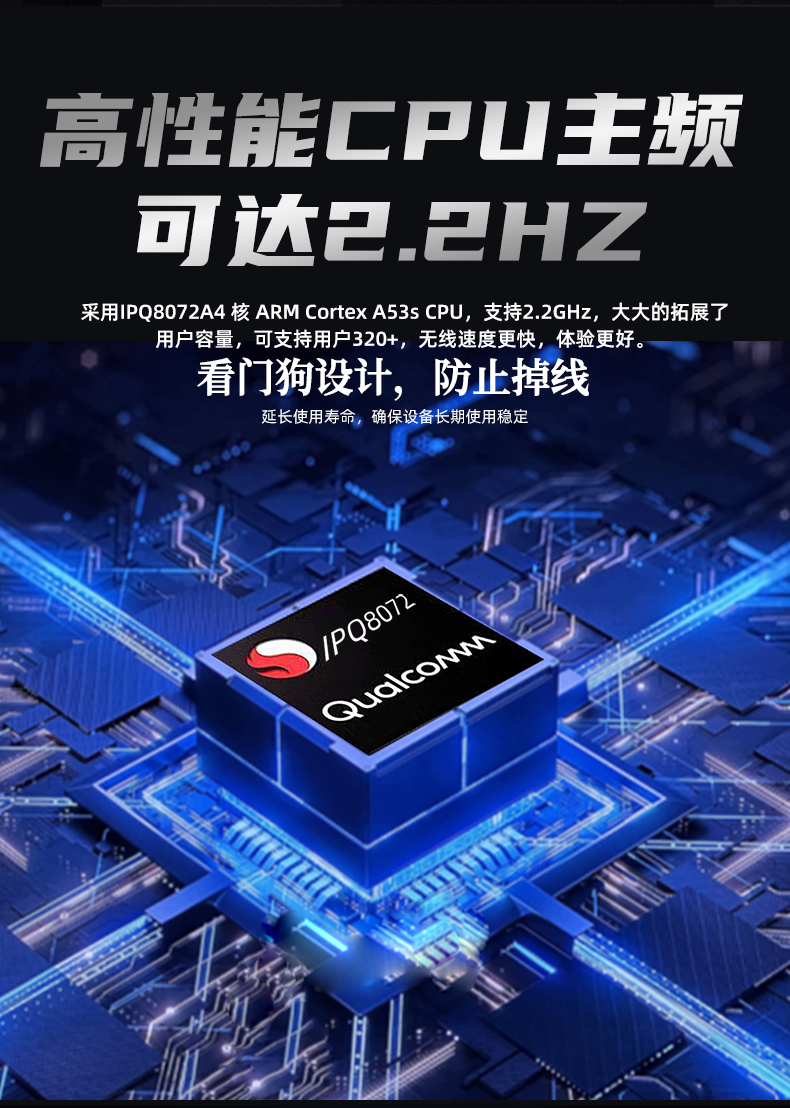 - 采用 IPQ8072A 方案,4 核 ARM Cortex A53s CPU,主频高达 2.2GHz