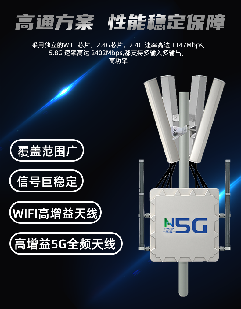 - 每路 WIFI 独立配制高功率 FEM,配合高增益天线,实现超强 WIFI 覆盖