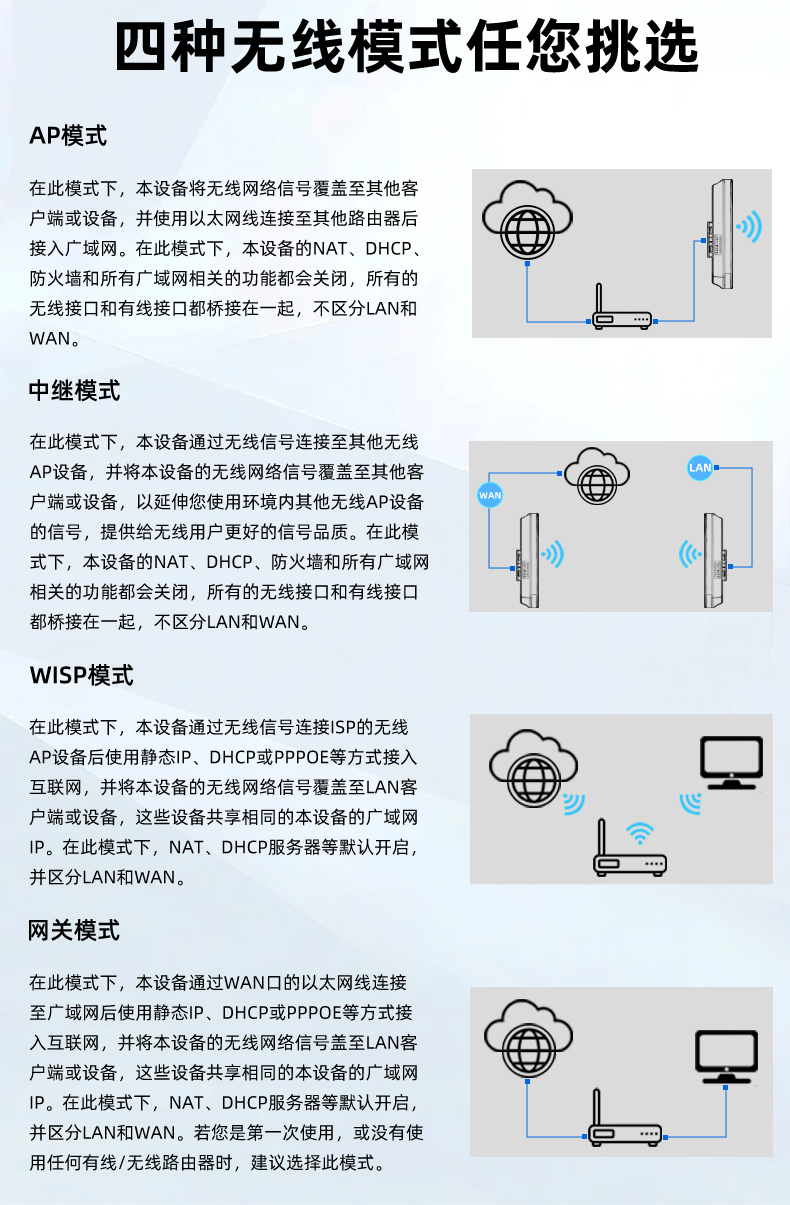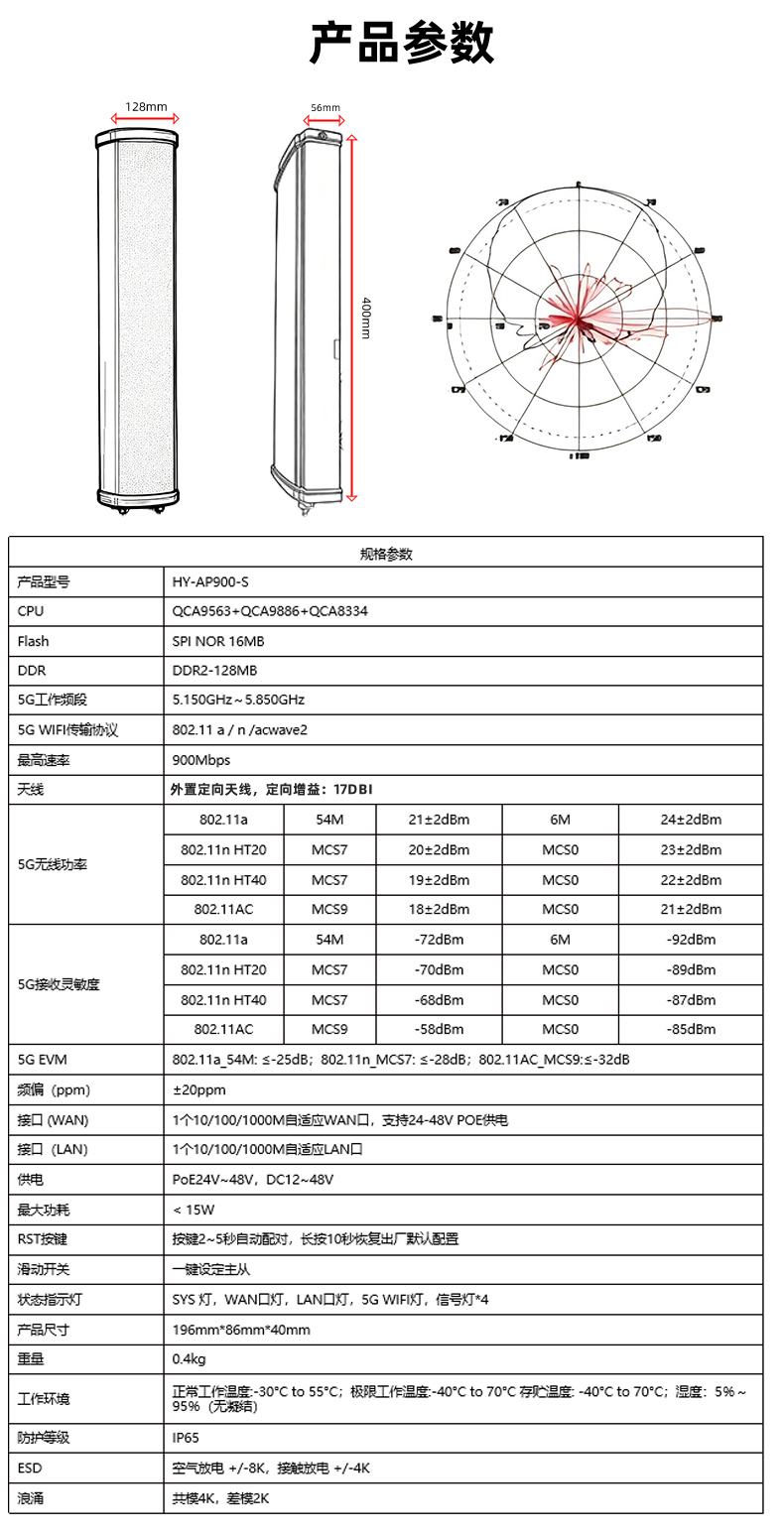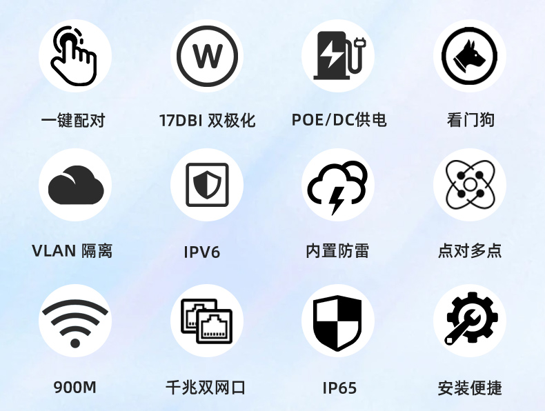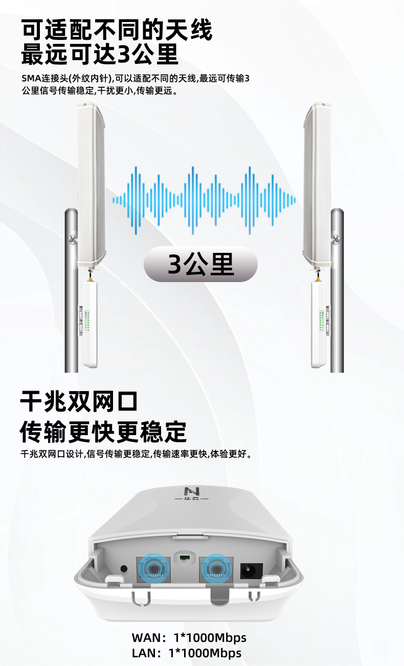 • 外置13dBi双极化全向天线,最远可达2公里。