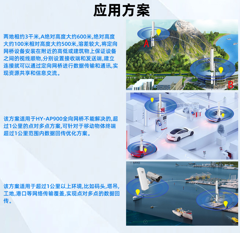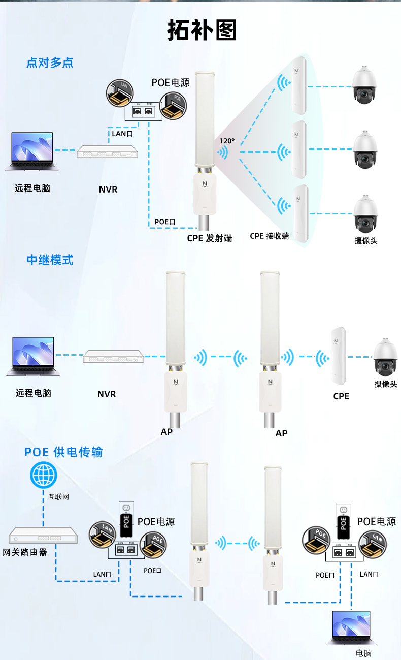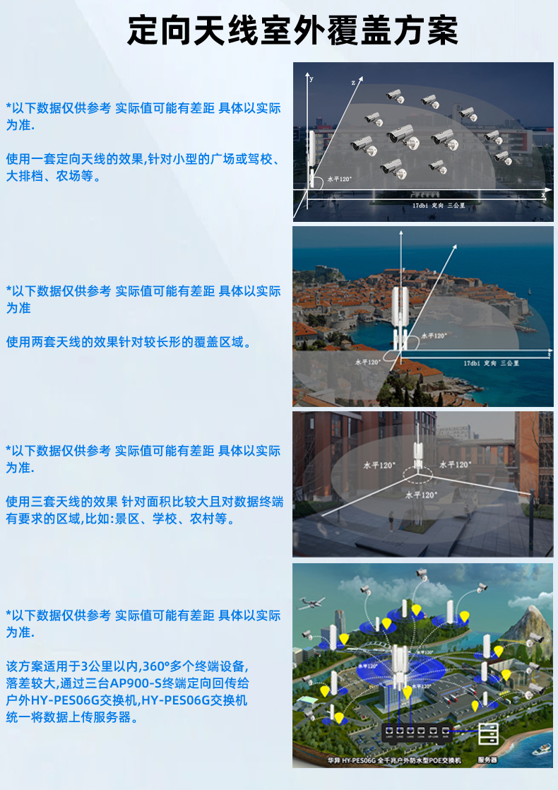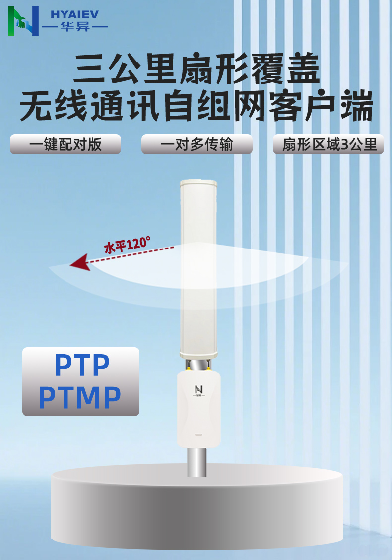• 半径3公里 水平120°传输