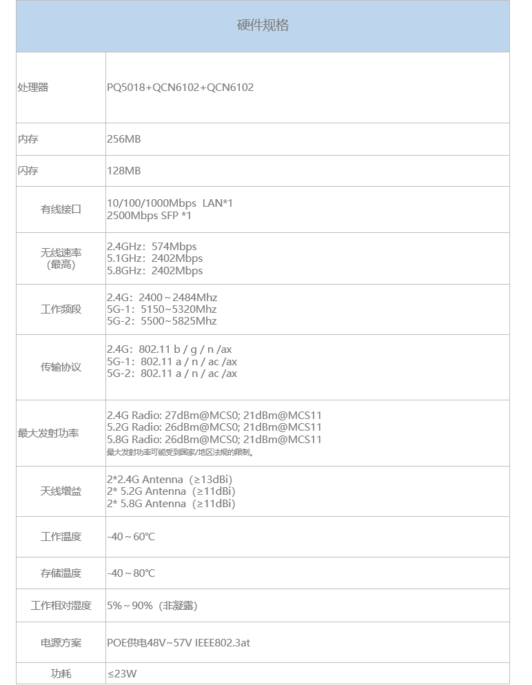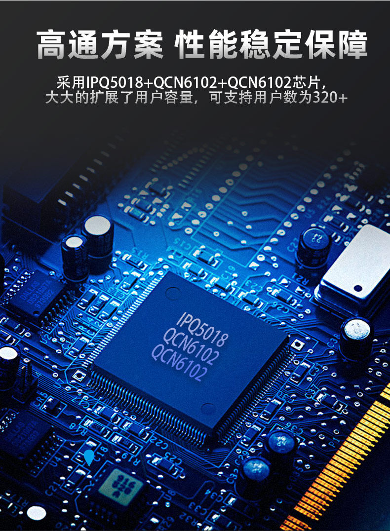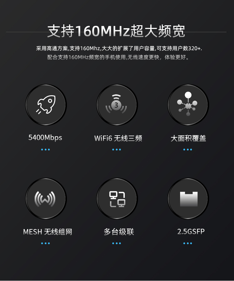 - 采用三频设计,使用新一代无线标准802.11ax协议最高连接速率可以达到5.378Gbps。