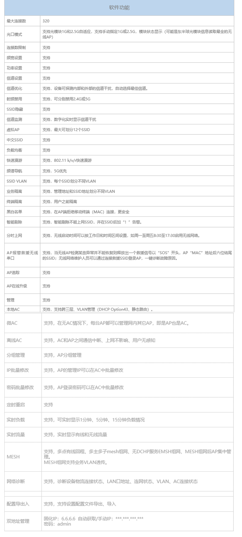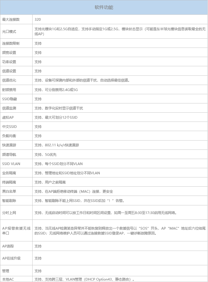 - 支持业务和管理VLAN安全隔离,业务和访客VLAN隔离,提业务数据安全级别。
