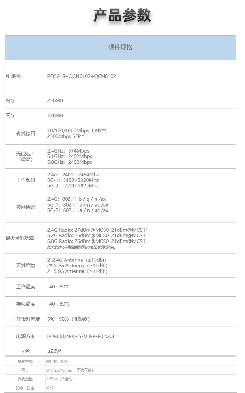 - 实现光纤组网,解决远距离传输,可选2.5G光口完美匹配无线高速率。