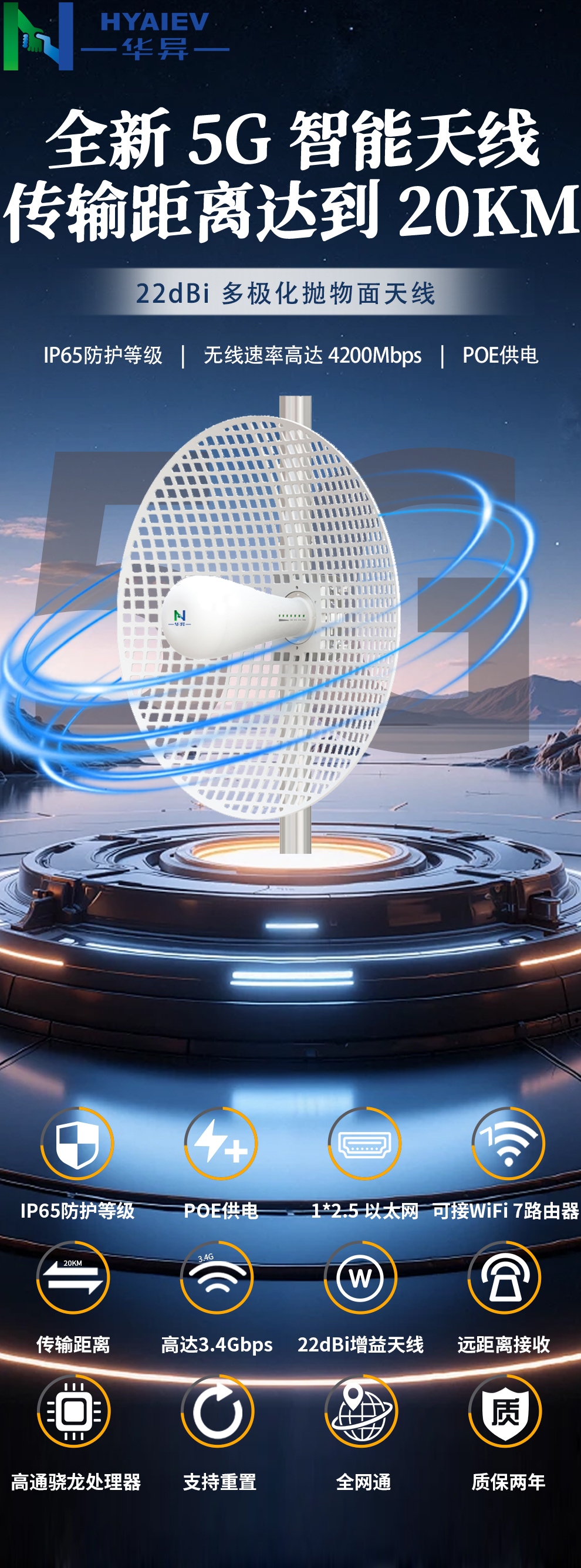 搭配全新 5G 智能天线,传输距离达到 20KM