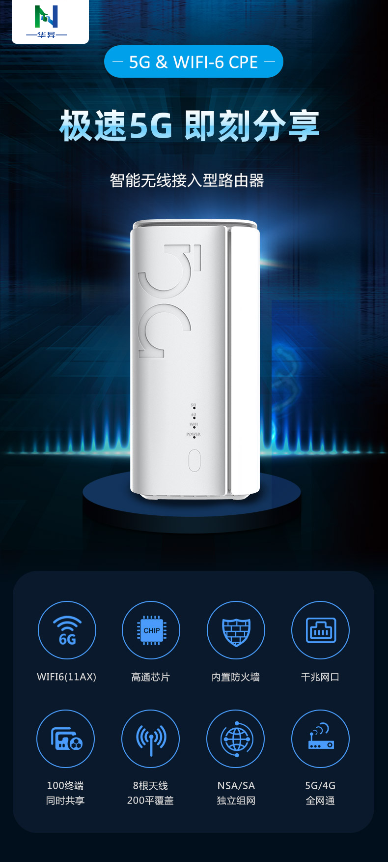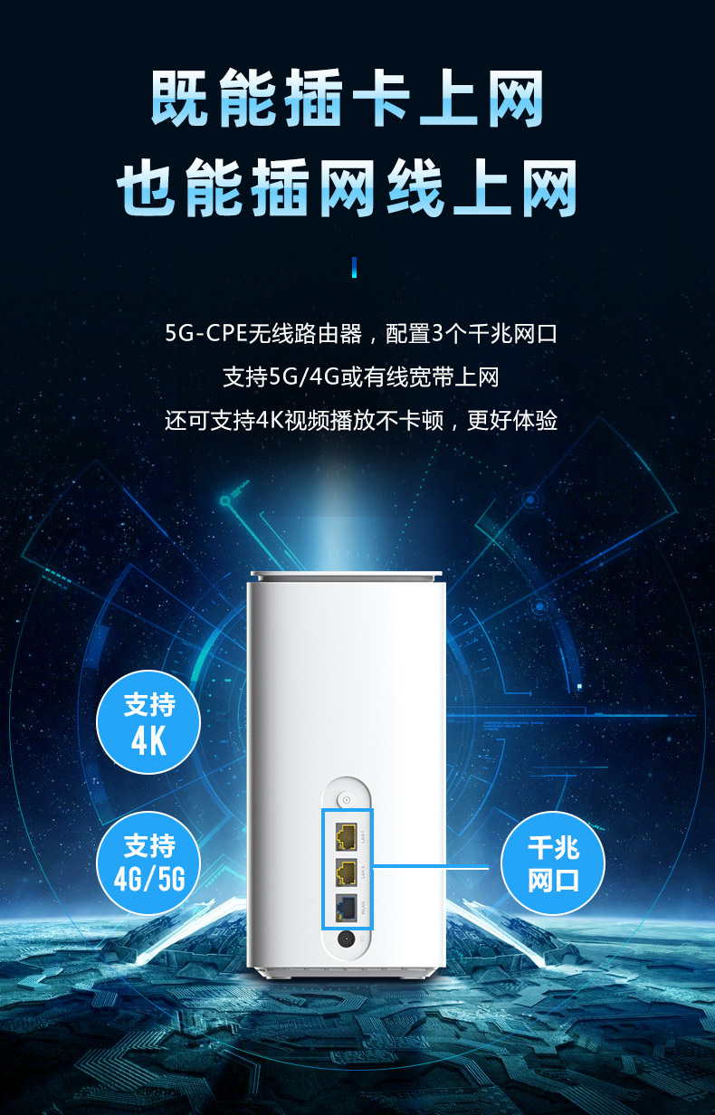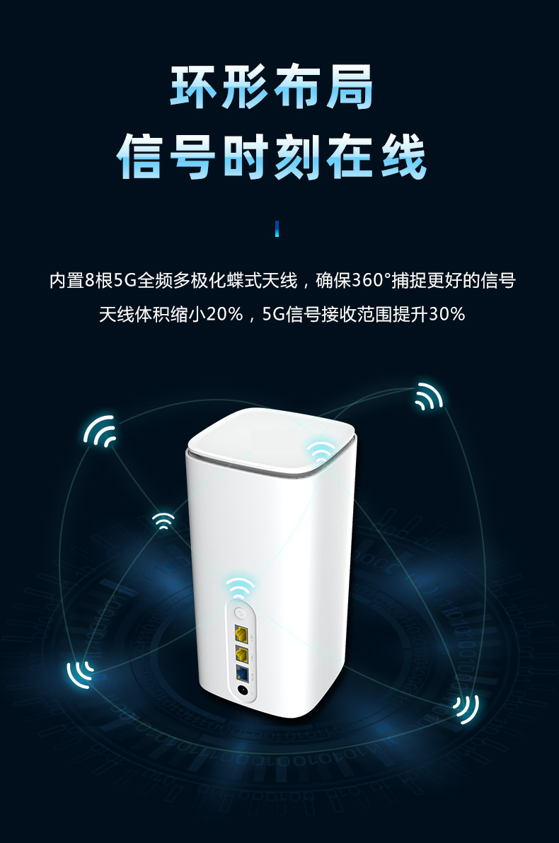 ML-5G CPE-ZR01(高通版),5G & WiFi-6 智能无线接入型路由器(CPE),基于全新的硬件平台开发,可满足日益增长的移动终端和IOT 物联网节点的接入需求,能极大地提高用户的无线上网使用体验。 CPE 完全兼容 NSA/SA 双模式,符合工信部电信产品入网标准。提供高达千兆级的空中光纤接入能力,满足 VR/AR/4GK/8K 在线视频流的传输带宽需求。得益于最新 802.1ax WiFi6 技术平台,单台 CPE 即可覆盖 200 平方空间并提供更佳的无线信号和网络带宽。提供了未来安全的技术、更高的网络效率、更快的 Wi-Fi 速度、更大的覆盖范围和更长的电池寿命,为用户提供了更好的网络体验.