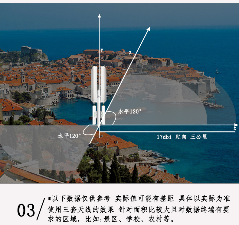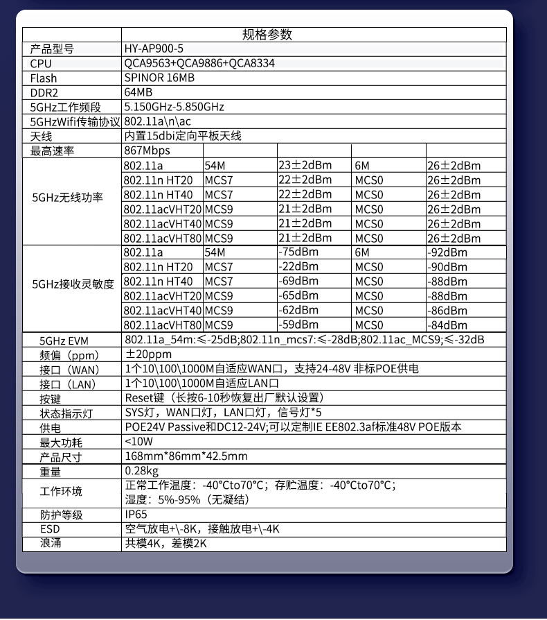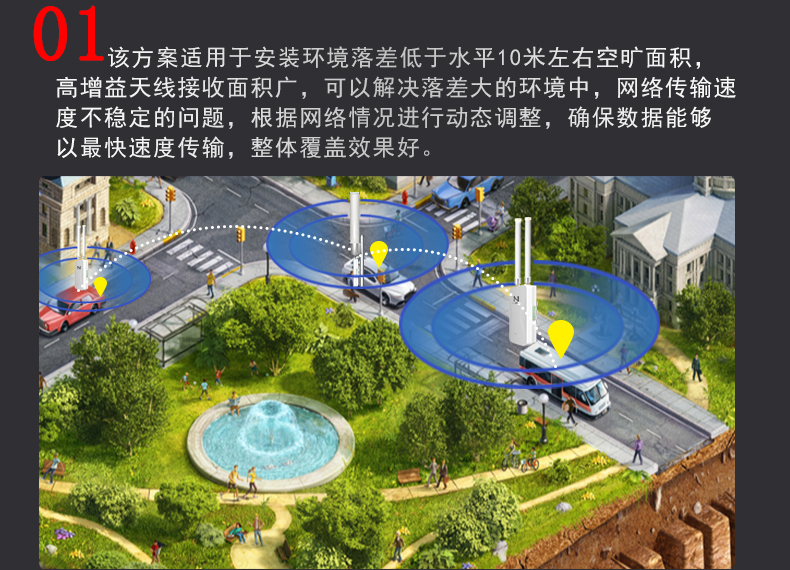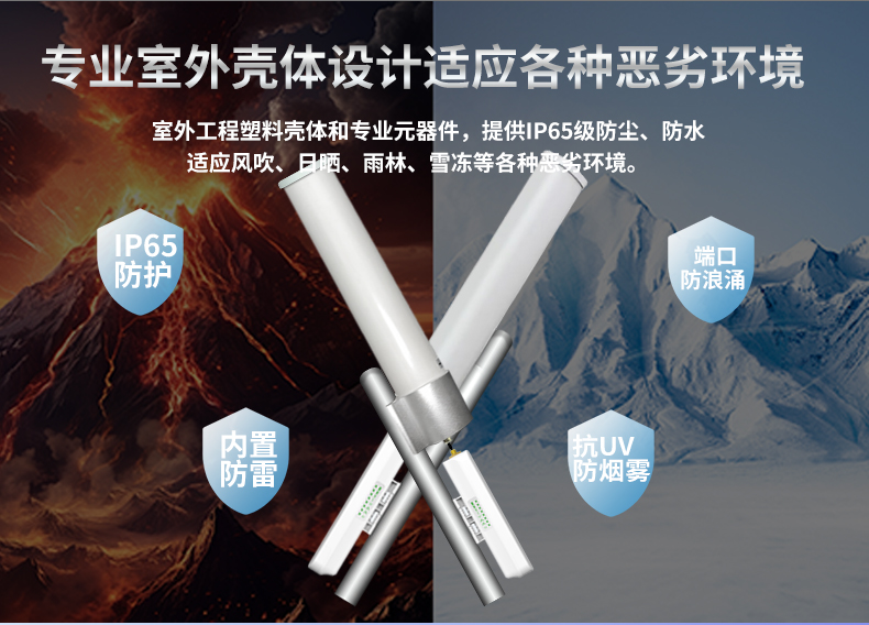 • 外置13dBi双极化全向天线,最远可达2公里。