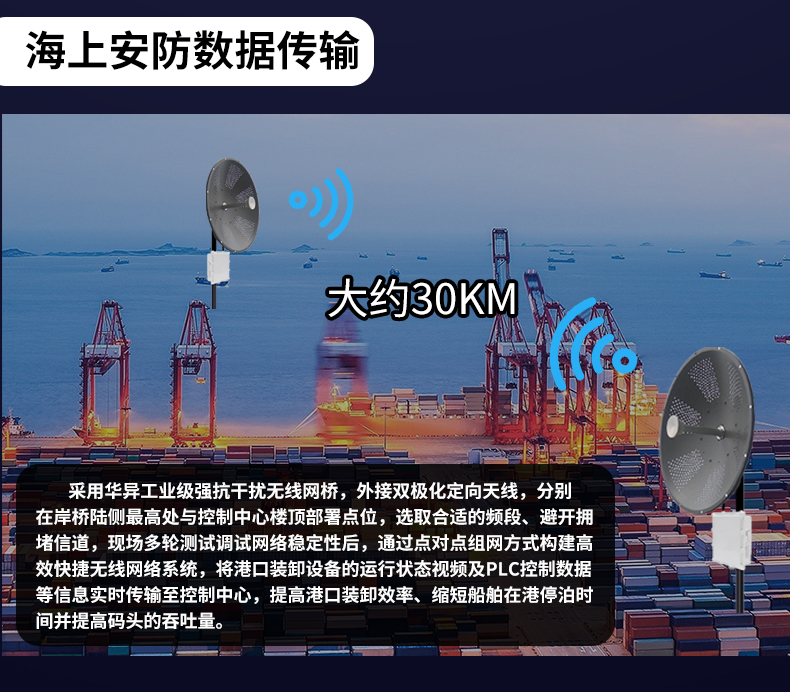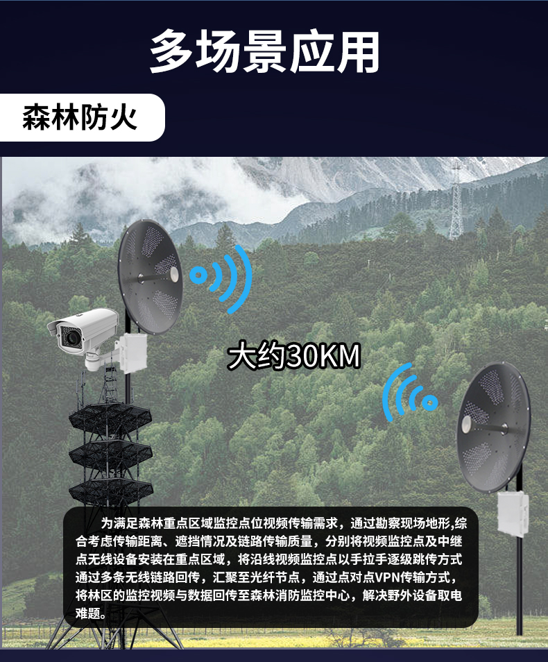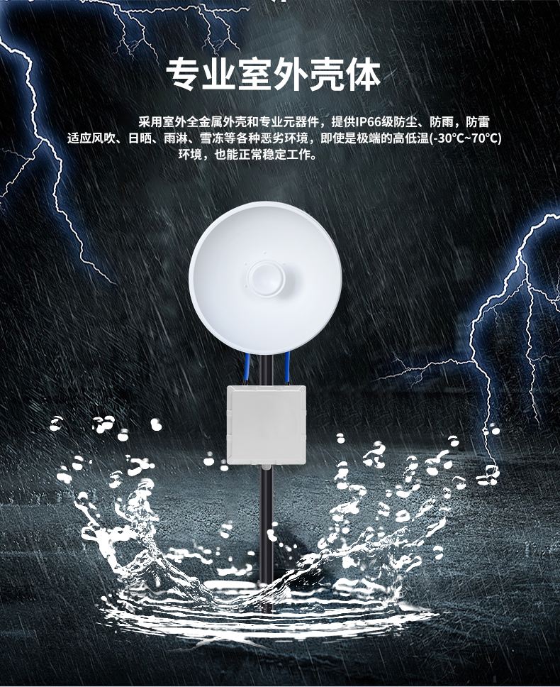 • 外置32dBi双极化碟形天线,最远可达30公里